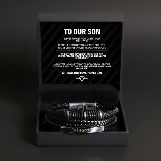 Son's Infinity Bracelet Gift Set w/ Engraved Name